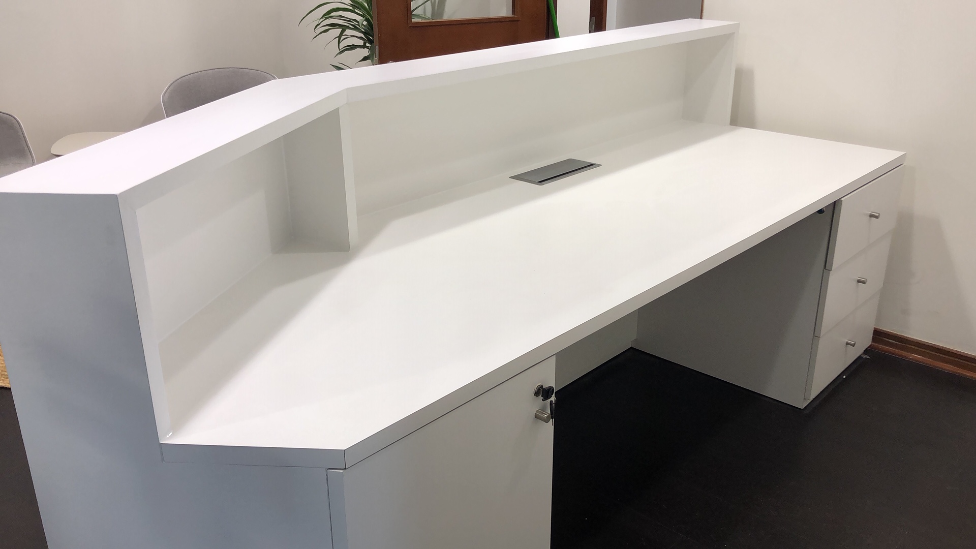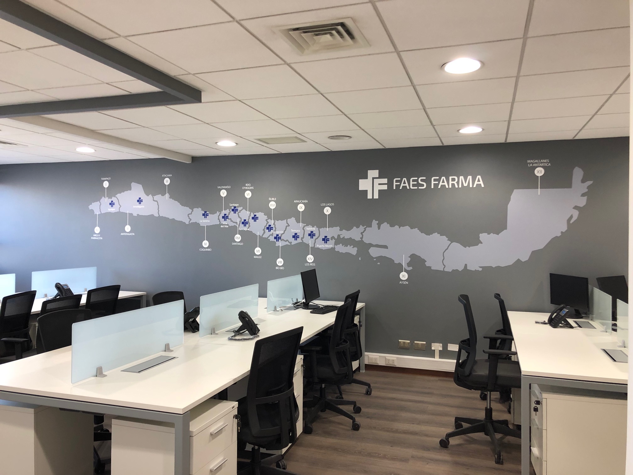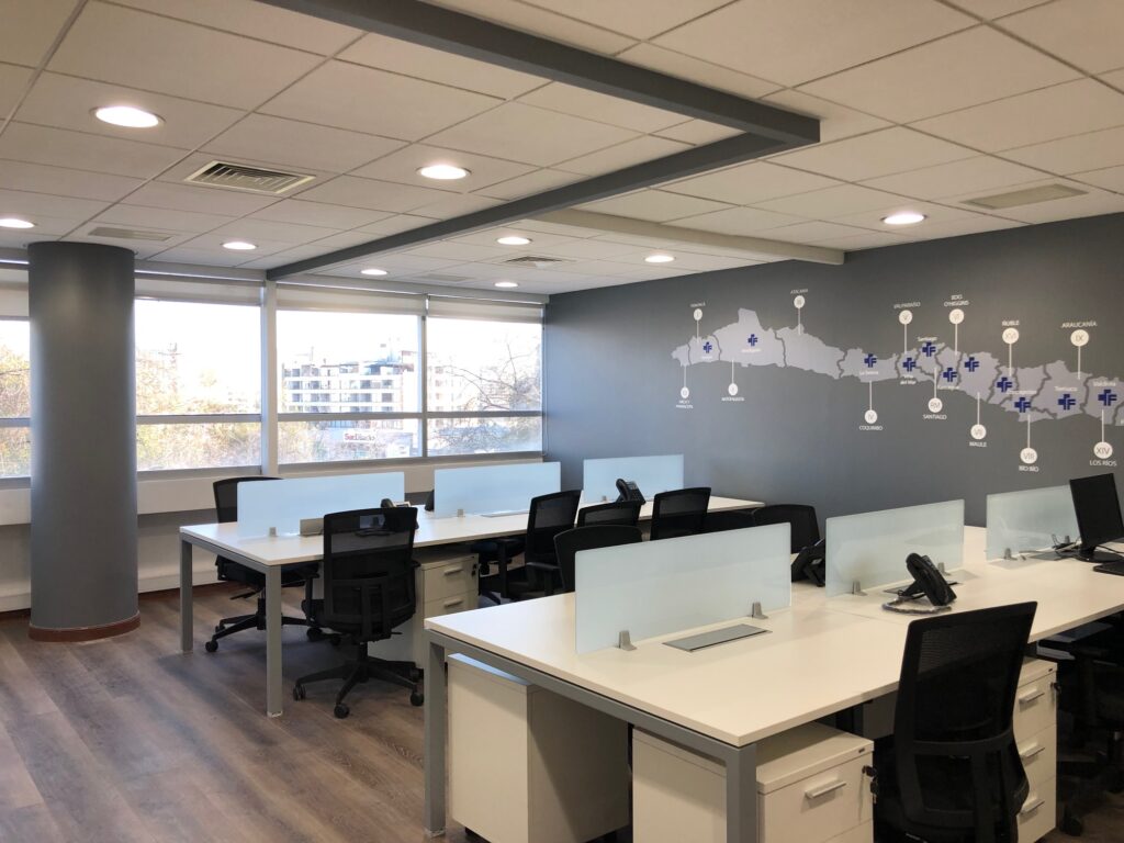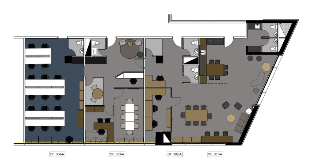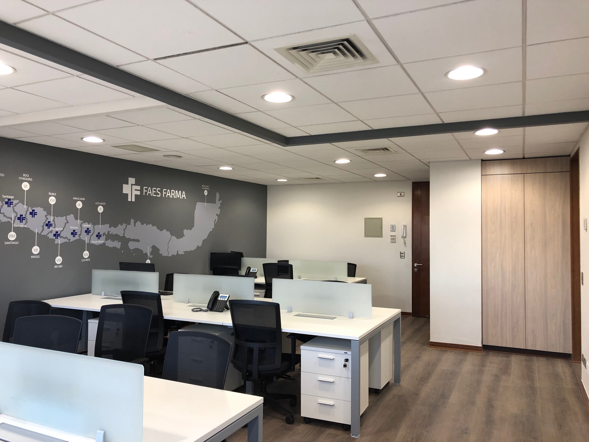 Remodelación 3º piso oficinas 302, 303, 304 y 305. Cliente: Faes Farma Para este proyecto se realizó un analisis del lugar, en base a la cual, posteriormente se hizo una propuesta de layout y se tomó en cuenta el mobiliario existente para reutilizar. > EL PROYECTO
